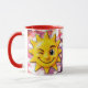 Un soleil super sympa sur un mug avec des coeurs qui virevoltent, il sourit et vous fait un beau clin d'oeil en guis e de belle journée.