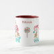 "Calories de Noël ne comptent pas" déclare cette mignonne tasse de Noël. En plus du texte stylisé en rouge, brun et turquoise, sont des images de mitaines, de flocons de neige et, bien sûr, de biscuits homme en pain d'épice. L'image est imprimée deux fois sur la tasse, avec une image de bonbon en bâton de menthe poivrée et votre nom personnalisé entre eux.