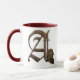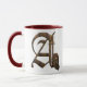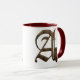 Une initiale gothique A de police texturisée en métal rouillé, décoré d'une épée d'imaginaire et d'un casque rouillé de chevaliers. Monogramme unique pour une tasse personnalisée !