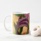 Appréciez la fin de fleur de daylily de la recherche de Starman, avec les couleurs d'autres lis au-delà sur cette tasse colorée.