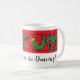 Les Dragons verts dansent sur un champ rouge. Joignez-vous au plaisir en sirotant votre café ou votre thé du matin. Quelle sera votre journée quand vous la commencerez en dansant avec les Dragons ?