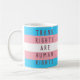 Un drapeau de fierté transgenre avec le message : Les droits trans sont des droits humains !