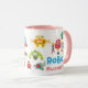 Amusant tasse personnalisée pour une fille qui aime les robots! Des robots colorés brillants avec un nom modèle sur l'avant et le robot, des noix et des boulons typographie stylisée! Pour obtenir des invitations de parties sur le thème du robot et des fournitures de soirée, consultez la collection ci-jointe du concepteur de contact LeahG.