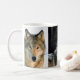 CETTE TASSE DE CAFÉ A TROIS BELLES PHOTOGRAPHIES D'UN LOUP DANS LE SAUVAGE. CETTE TASSE EST UN RAPPEL DE LEUR BEAUTÉ MAIS ÉGALEMENT LE FAIT QU'ELLES SONT ESPÈCE MENACÉE ET CELA NOUS DEVONS SOUTENIR LES LOIS QUI LES PROTÈGENT ET LEUR ENVIRONNEMENT