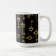 Seamless pattern of antique, gold and silhouette keys on black background.