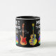 Célébrez votre professeur de musique pour son excellent travail avec cette tasse à café noire amusante "Les professeurs de musique déchirent" avec des guitares psychédéliques colorées et une typographie rock moderne. Une excellente façon de dire merci à la fin de l'année scolaire ou simplement pour montrer votre appréciation. Des guitares électriques et des illustrations détaillées de guitare acoustique dans des tons vibrants de bleu, rose, violet, vert, bleu, jaune et orange sur fond noir. Œuvre originale de l'artiste Catherine Sweetman.