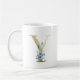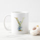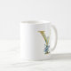 Mug Lettre à monogramme doré Y Fleurs aquarelles bleue