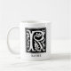 Cette tasse comporte une lettre "R" ornementale monogramme avec un nom ci-dessous pour vous permettre de personnaliser avec votre propre nom ou autre texte.