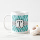 Mug Lettre blanche turquoise T Chevron de monogramme