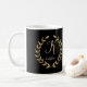 "Lettre de script monogramme K Noir et or avec votre nom sur une confiture de café." Élégante et sophistiquée couronne de feuille d'or avec votre monogramme, alphabet, lettre K en parties scintillant d'or. Personnalisez votre nom en écriture manuscrite. Art par Audrey Jeanne Roberts, artiste titulaire d'une licence internationale, copyright.