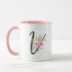 Mug Lettre de script "V" des fleurs botaniques moderne