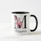 Belles fleurs d'aquarelle dans les teintes de rose, mauve et rose poussiéreux ornent une lettre noire classique M. Ajoutez un nom à ce magnifique design de monogramme de lettre florale pour un cadeau unique qui sera chéri pour toujours.