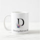 Lettre initiale. Monogramme Élégant Tendance Café Mug. Bouteille de café monogramme de luxe, tendance à la lettre initiale personnalisée avec la fleur. Un cadeau personnalisé parfait ou un accessoire avec une touche personnelle! D lettre.