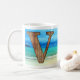 Lettre Monogramme initiale V sur la plage, une grande tasse pour lui ou elle pour la Fête des pères de Noël d'anniversaire ou à tout moment !
