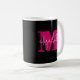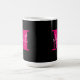 Une tasse à café élégante présente votre prénom en blanc sur une première lettre rose chaud monogramme sur un arrière - plan noir. CORRESPONDANCE d'objets dans notre collection.