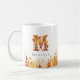 D'élégants feuilles d'aquarelle encadrent le fond de cette tasse tandis que la lettre M est un collage d'élément festif de chute de feuilles rouge orange et jaune, Personnalisez avec un nom pour le rendre unique à vous.