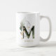 Lettre monogramme de feuillage tropical personnalisé "M" aux accents d'or faux café mug. Cliquez sur le lien Customiser pour modifier la police, la taille et la couleur. >>> Consultez l'ensemble de la collection (lien ci-dessous) https://www.zazzle.com/collections/tropical_foliage_monogram_tote_bags_coffee_mugs-119635332640853209