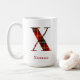 Customisez cette tasse X monogramme initiale en plaid rouge moderne pour le cadeau de Noël parfait.