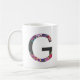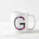 LETTRE BOtanique FLEUVE POROUGE G MONogramme Mug | Mug monogramme moderne et élégant avec aquarelle illustration de fleurs avec un arrière - plan au charbon de bois. Cette tasse botanique sera un cadeau personnalisé parfait. D'autres lettres et couleurs sont disponibles.
