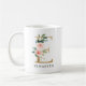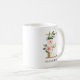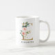 Cute, élégante tasse à café monogramme avec la lettre "E" dans un style faux feuille d'or ornée de fleurs d'aquarelle blanches et roses rousses et de verdure. Personnalisez la tasse de café en ajoutant votre nom ou votre texte personnalisé.