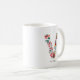 Tasse à lettre florale fantaisiste, festive et élégante, avec des fleurs dans le feuillage en rouge, vert, or et gris. Personnalisez en ajoutant des noms ou une courte phrase. D'autres couleurs et lettres sont disponibles.