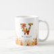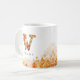 D'élégants feuilles d'aquarelle encadrent le fond de cette tasse tandis que la lettre W est un collage d'élément festif de chute de feuilles rouge orange et jaune, Personnalisez avec un nom pour le rendre unique à vous.