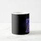 Mok met de lettre Z. (bijvoorbeeld je initiaal) Leuk als je naam met de Z begint of die van een ander. Achter de lettre est een raster en mysterieuze wolken met een licht die erop schijnt. De lettre Z est donné a rencontré een plaid patroon en een grijze rand erom heen. kleuren blauw, paars, geel en zwart.