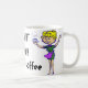 Graphique d'une dame heureuse tenant une tasse de café. Le texte lit : "L'humain instantané ajoutent juste le café". Connaissez-vous un intoxiqué de café ? C'est la tasse idéale pour eux !