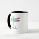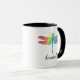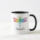 Tasse personnalisée par silhouette magnifique de libellule d'aquarelle d'arc-en-ciel. Conception des deux côtés. Arc-en-ciel de couleurs dans l'aquarelle, silhouette de libellule. Ajoutez le nom pour personnaliser. www.SamAnnDesigns.com