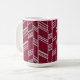 Cette tasse a un design art déco de lignes verticales argentées avec des lignes diagonales argentées les reliant sur un champ de marron.