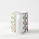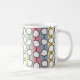 Cette tasse présente un design moderne du milieu du siècle de cercles blancs "déformés" reliés par des lignes noires sur un champ de bandes vert pâle, rose pâle, bleu pâle et jaune pâle. Si vous aimez le design mais préférez différentes couleurs, envoyez-moi un message.