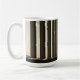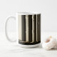 Colonnade architecturale moderne avec de hautes colonnes verticales jetant de longues ombres diagonales à l'heure d'or; silhouette solitaire à distance - mug minimaliste. La lumière chaude et calme répond à une géométrie précise. De hautes colonnes sculptent des ombres diagonales croustillantes sur le sol, menant l'oeil vers une silhouette solitaire et un ciel ouvert. La palette dorée et la composition minimaliste apportent une touche de calme aux bureaux créatifs, aux espaces studio et aux cuisines modernes, un cadeau élégant pour les architectes, les designers et les amateurs de lignes épurées.