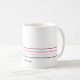Cette tasse à café blanc minimaliste moderne présente de fines lignes verticales dans les tons noir et rose. Personnalisez-le avec votre nom en bas.