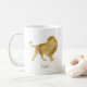Une tasse à café à thème animal, cette conception comporte un lion doré avec votre nom écrit sous la police cursive.