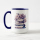 Jolie pile vintage de livres rose et bleu avec des roses sur le haut de l'art AI cafetières personnalisées.
