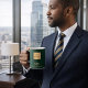 Un fond vert émeraude classique. Personnalisez et ajoutez votre logo d'entreprise (3), un nom et des initiales de monogramme (3). Le nom est écrit en blanc avec des lettres blanches et dorées modernes.