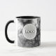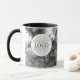 Logo Affaires personnalisé Mug noir et blanc. Moderne et tendance avec logo et texte personnalisables. L'encre noire dans l'arrière - plan pour un effet intéressant. Ajoutez votre logo dans l'espace blanc circulaire. Les couleurs en noir et blanc donnent un aspect minimaliste et simple, moderne et professionnel. Utilisez ces tasses personnalisées pour les départs, les salons, les réunions de clients et pour vos employés pour une utilisation quotidienne au bureau. Consultez les autres produits avec ce design simple et moderne pour un look cohésif dans tout votre bureau et vos fournitures de marque. Contactez-moi via le Conversation de Zazzle pour un travail sur mesure.