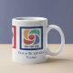 Cette mignonne tasse personnalisable de logo d'entreprise met en vedette votre insigne d'entreprise à côté d'un joli signe de paix vert et de coeur rouge pour Noël. Personnalisez avec votre logo professionnel et d'autres textes personnalisés pour le marketing d'entreprise.