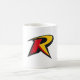 Un emblème «R» élégant et stylisé avec des bords angulaires nets, présentant des tons rouges et jaunes gras sur une base noire, évoquant l'agilité et l'héroïsme tout en restant moderne et original.
