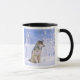 Mug Loup de bois assis dans la neige, Canis lupus,