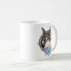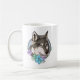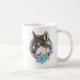 Illustration d'un loup gris aux fleurs bleues et violettes.