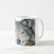 Ce produit comportant un loup gris avec les yeux bleus brillants est grand comme cadeau