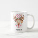 The charming watercolor design features a cute reindeer face, rosy cheeks, and festive antlers decorated with a holly wreath, a gold star, and two heart-shaped candy canes. Customize it with any name (e.g., 'ROSIE') to create an exceptionally sweet Secret Santa gift, a lovely personalized gift for her, or a perfect mug for hot cocoa
