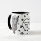 Cette tasse pour le propriétaire noir du Labrador Retriever Dog présente un portrait aquarelle d'artiste d'un laboratoire noir. L'image est imprimée deux fois, et entre eux est un ovale avec le texte noir qui dit "Aimez mon Black Lab". Les images ovales et de chien sont placées sur un arrière - plan parsemé d'empreintes de pattes noirs. Vous pouvez facilement changer le texte en autre chose, ou le personnaliser, si vous le souhaitez.