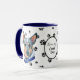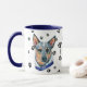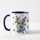 Cette tasse pour le propriétaire australien du chien de bétail présente un portrait aquarellé d'un magnifique chien de bétail bleu et bronzé portant un collier bleu. L'image est imprimée deux fois, et entre eux est un ovale avec le texte noir qui dit "Aimez mon chien de bétail". Les images ovales et de chien sont placées sur un arrière - plan blanc parsemé d'empreintes de pattes noirs. Vous pouvez facilement changer le texte en autre chose, ou le personnaliser, si vous le souhaitez.
