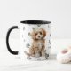 This mug for the Cavapoo Dog owner features an artist's watercolor portrait of an adorable buff colored Cavapoo. The image is printed twice, and between them is an oval with the black text that says "Love my CAVAPOO". The oval and dog images are placed on a background sprinkled with paw prints. You may easily change the text to something else, or personalize it, if you'd like.