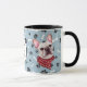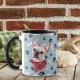 Cette tasse du propriétaire français de Bulldog présente le portrait aquarelle d'un adorable Français blanc vêtu d'un foulard au cou rouge avec un motif d'os dorés. L'image est imprimée deux fois, et entre eux est un ovale avec le texte noir qui dit "Aimez ma frontière Collie". Les images ovales et de chien sont placées sur un arrière - plan bleu gris parsemé d'empreintes de pattes noirs et d'os blancs. Vous pouvez facilement changer le texte en autre chose, ou le personnaliser, si vous le souhaitez.