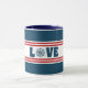 Amour design nautique avec décoration boussole sur bleu, rouge et blanc rayé arrière - plan