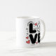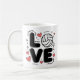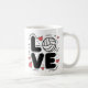 A cute volleyball coffee mug for volleyball players, coaches and fans, with LOVE in bold text and a cute volleyball in place of the O. A fun gift for volleyball lovers, especially for girls and women.