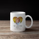 Tasse à café personnalisée avec 2 photos de famille en forme de coeur mignon, les mots "nous t'aimons maman", et les noms des enfants. Peut être changé en n'importe quelle relation !